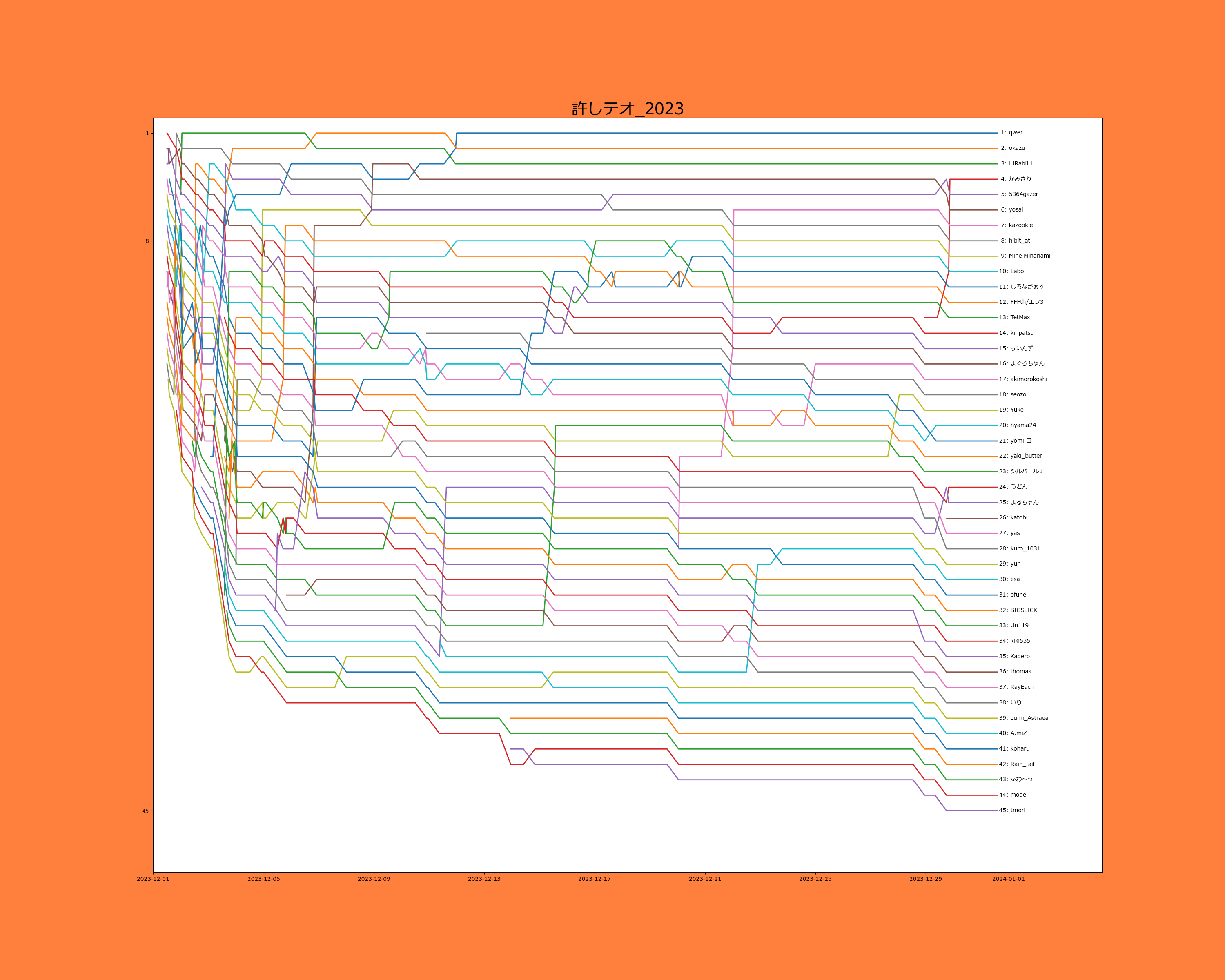 270 | (27.55 %) | 10 | 73.26 % | こんなリーグ作ってごめんなさい。ゆるしテオ✨ |