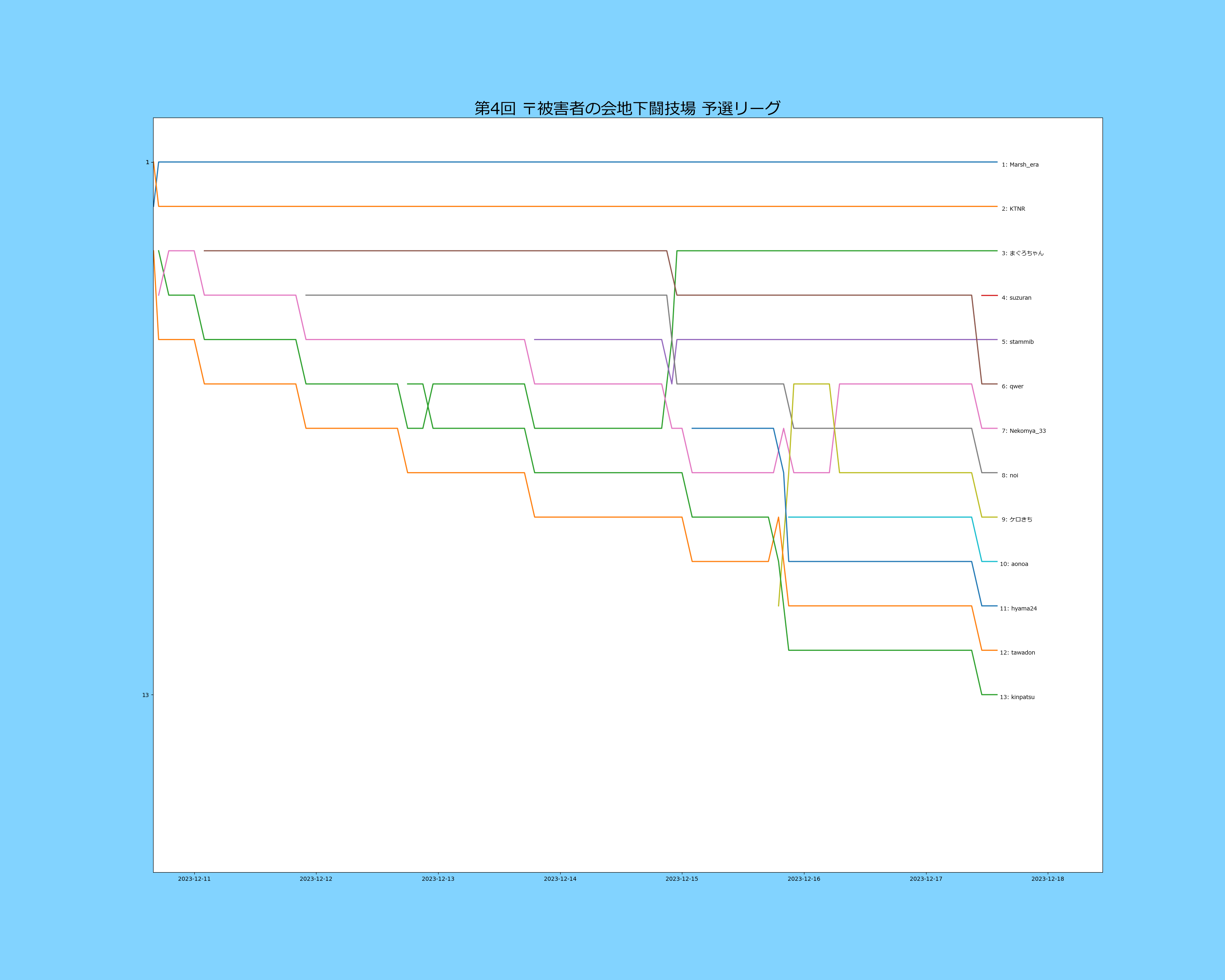 58 | (64.44 %) | 5 | 91.69 % | このリーグを通して、大いに成長できた気がするので感謝の意を評します。ありがとう。 |
