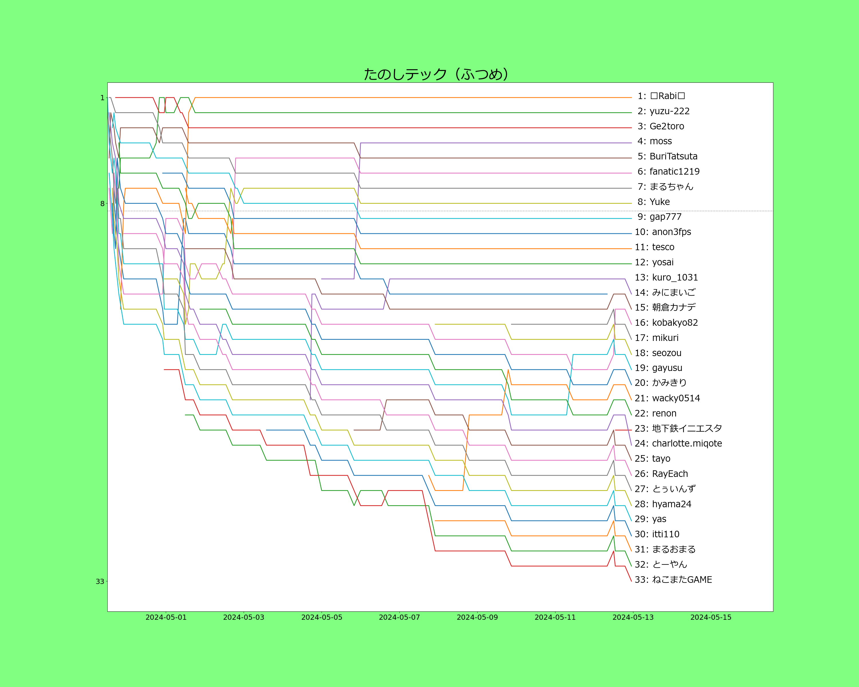 リーグの種別 : 公開 (上限なし) 有効譜面数 12/12