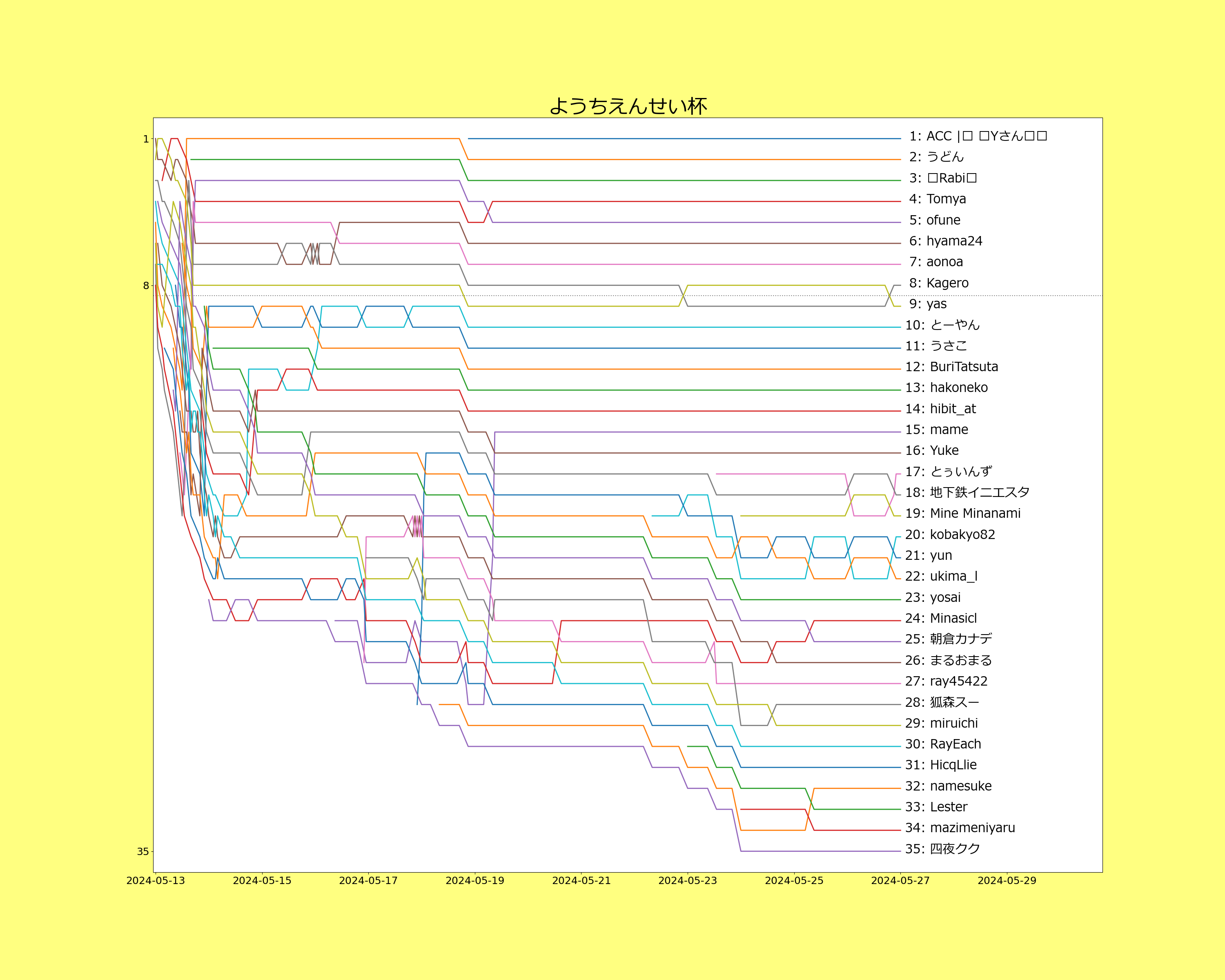 156 | (34.21 %) | 12 | 66.61 % | 中間順位と選手の声をXにポストしました(5/19 11am) |