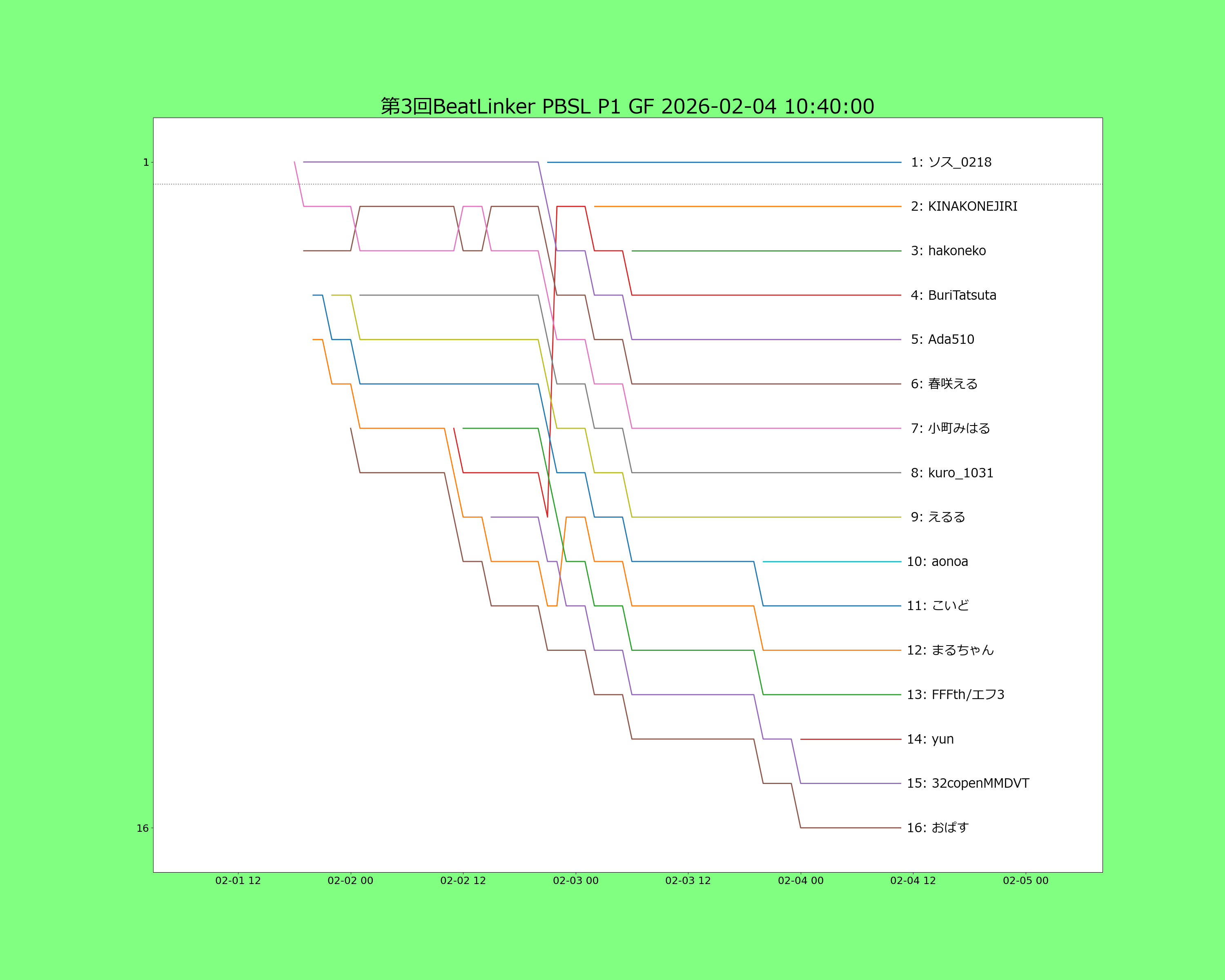 リーグの種別 : 公開 (上限なし) 有効譜面数 5/5