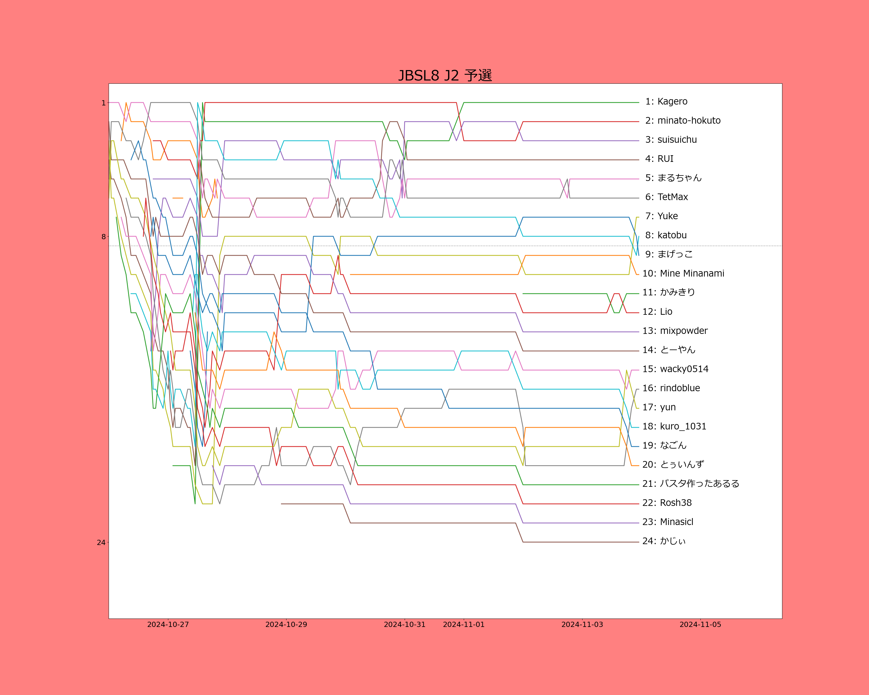 89 | (61.38 %) | 5 | 91.19 % | BSエンジョイしてただけなのになんとなく初めてJBSL参加しようとしたらJ2に放り込まれた人← |