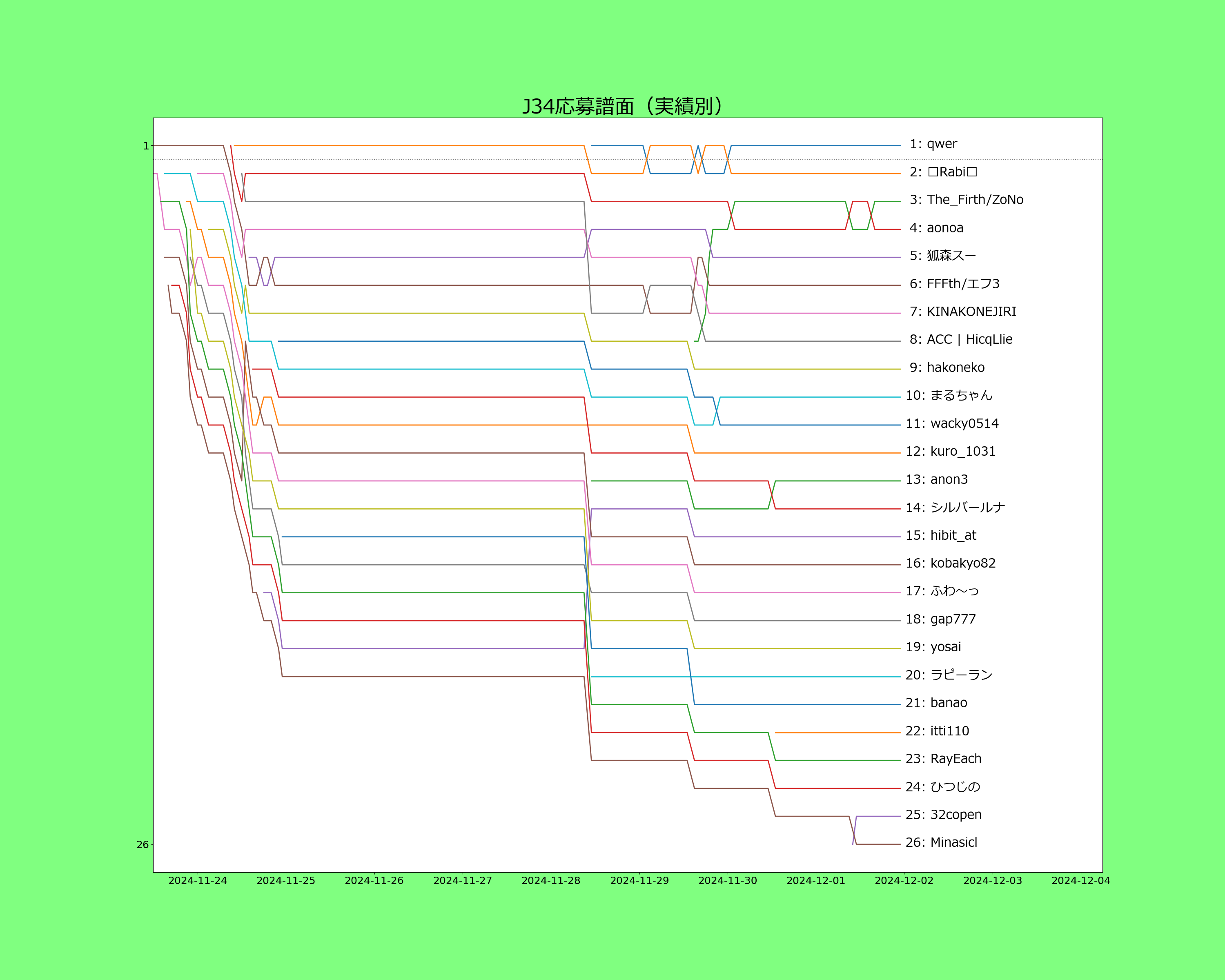 63 | (8.69 %) | 8 | 74.26 % | J2最低峰の精度お化けです。(✿✪‿✪。) |
